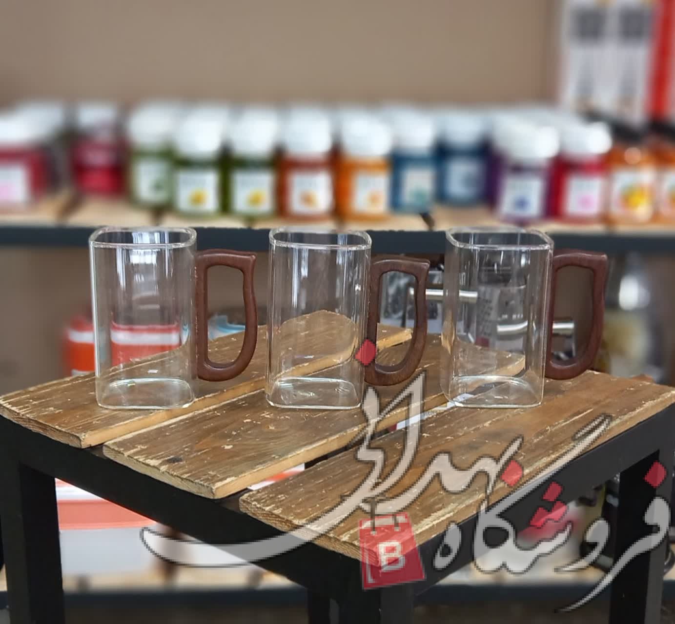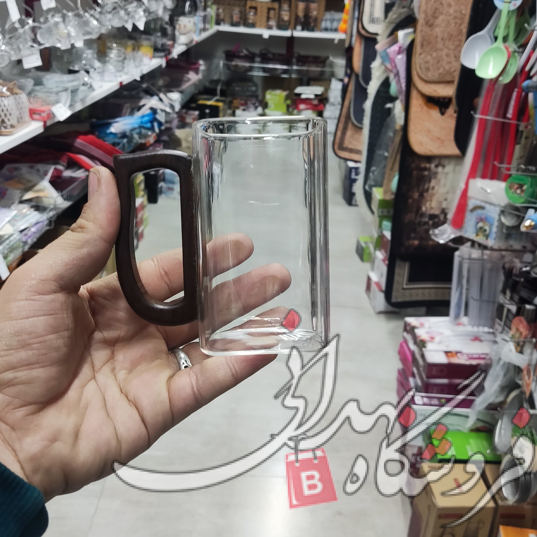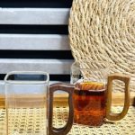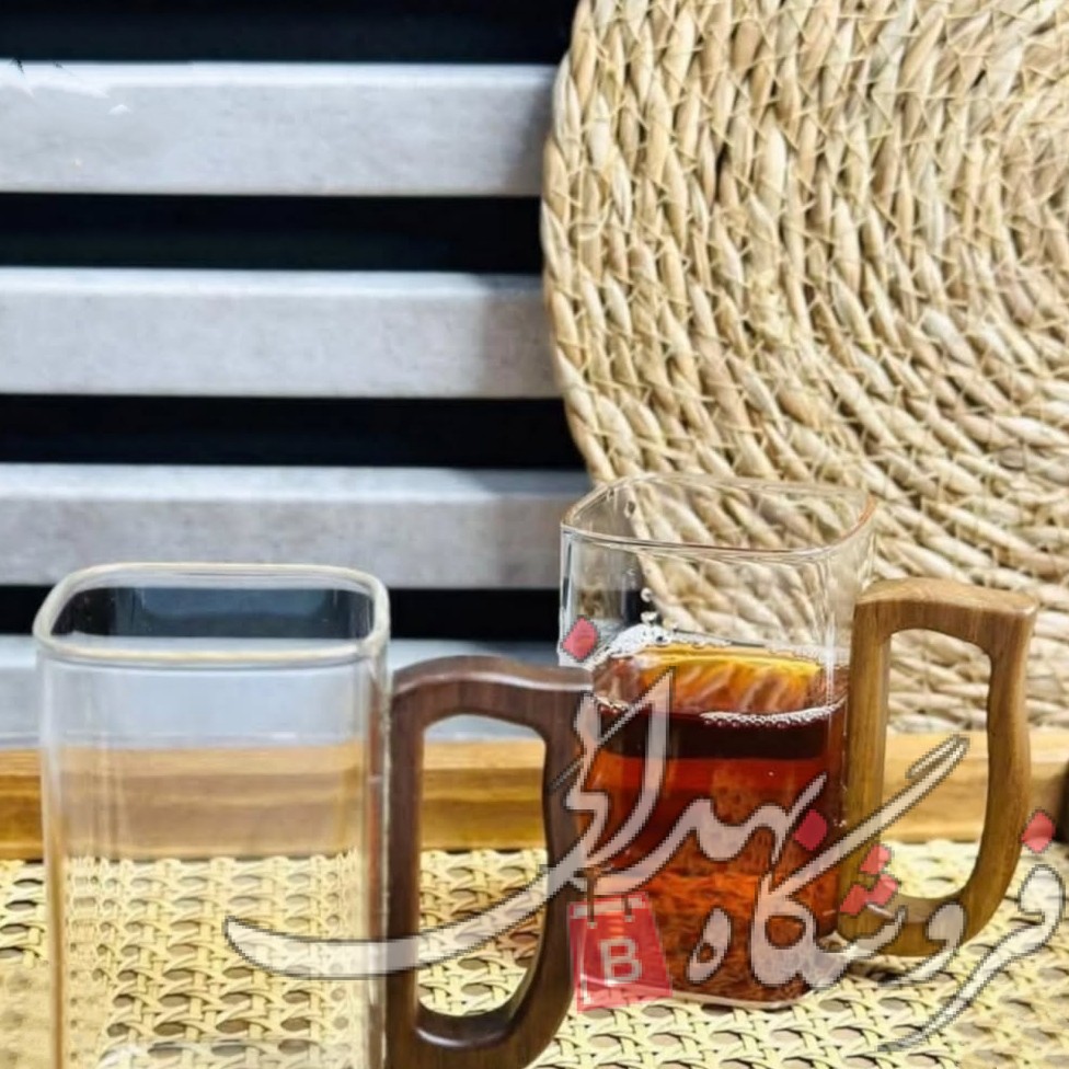 لیوان پیرکس دسته چوبی مربع بلند